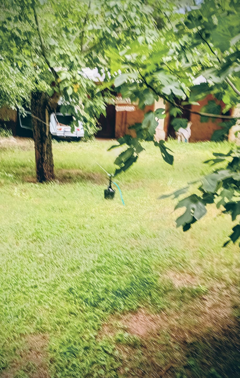 Hola, desde Sañogasta el sábado por la tarde, regando el parque de entrada, entre las higueras, los granados de jardín…